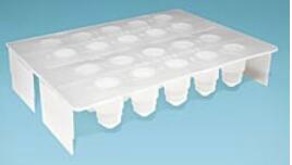 聚乙烯材料,薄的透視的尖端便于樣本包埋時(shí)快速的定向;樣本包埋塊可以用拇指輕輕向上頂出;20個(gè)管子各自獨(dú)立,允許空氣自由流動(dòng)(不會(huì)局部聚集溫度),聚合條件統(tǒng)一;模具設(shè)計(jì)嚴(yán)密,適合厭氧包埋樹脂的使用,一個(gè)支架疊放在另一個(gè)有包埋樹脂的支架上方就可以隔絕空氣;模具也可以用來(lái)存儲(chǔ)樹脂切片。