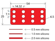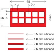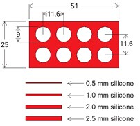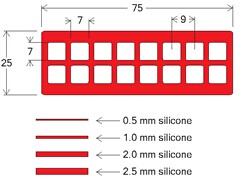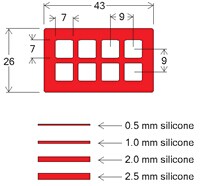 硅膠隔離貼片,又稱硅膠墊密片、試劑壩、硅膠貼封片等。可用于同一芯片上的多樣品反應(yīng),珍貴微量樣品的檢測等等。隔離片可使加樣更準(zhǔn)確,防止樣品間的交叉反應(yīng),且與配套雜交反應(yīng)蓋片合用還可使加樣更容易,反應(yīng)和雜交更均勻,防止反應(yīng)液揮發(fā),避免空氣中灰塵污染,是各種微陣列芯片進(jìn)行雜交或免疫反應(yīng)的理想輔助工具。該產(chǎn)品可以壓力粘貼,可干凈去除。硅膠屬于惰性材料,對生物樣品無不良影響,如果用來培養(yǎng)敏感性細(xì)胞,建議選用新型的無色透明的CultureWell硅膠貼片。