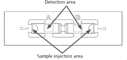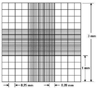 C-Chip (DHC-N01)是用于手工計(jì)數(shù)的一次性塑料血球計(jì)數(shù)板, 不但能精確的控制體積,而且操作簡(jiǎn)單。包括兩個(gè)閉合的小室,每個(gè)小室有兩個(gè)樣品進(jìn)出口(圖2)。DHC-N01格柵和改良式紐鮑爾格柵很相似。包括九個(gè)大格,每個(gè)大格為1×1mm ,每格深度為0.1mm。每個(gè)大格總體積為0.1mm3或者10-4cm3(圖1)。正中心的一個(gè)大格經(jīng)過三重分割又被分成25個(gè)小格,四角上的四個(gè)大格分別被分成16個(gè)小格。