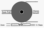 純銅材料(直徑3mm,厚25um),安裝在直徑16mm的鋁盤上。